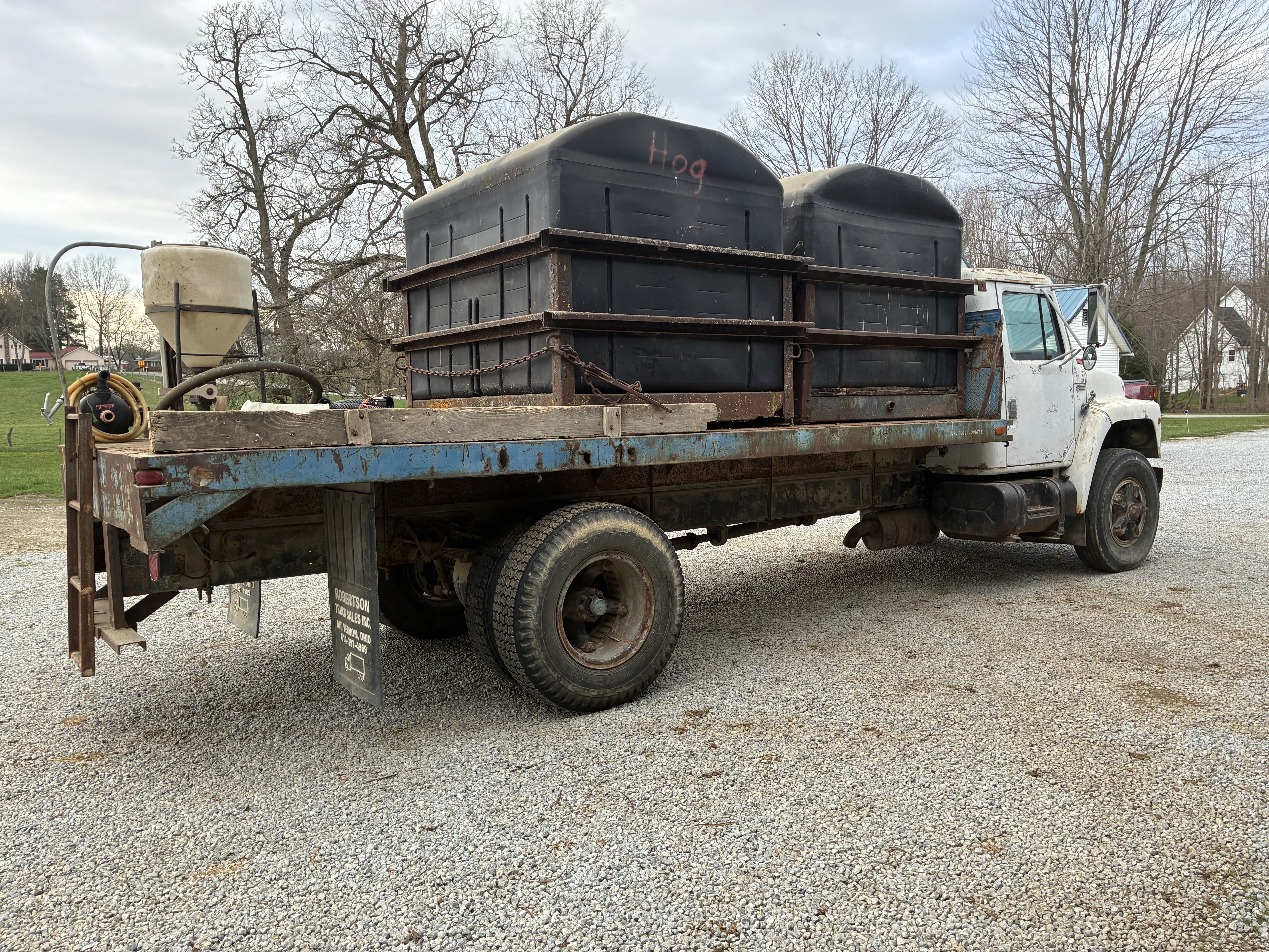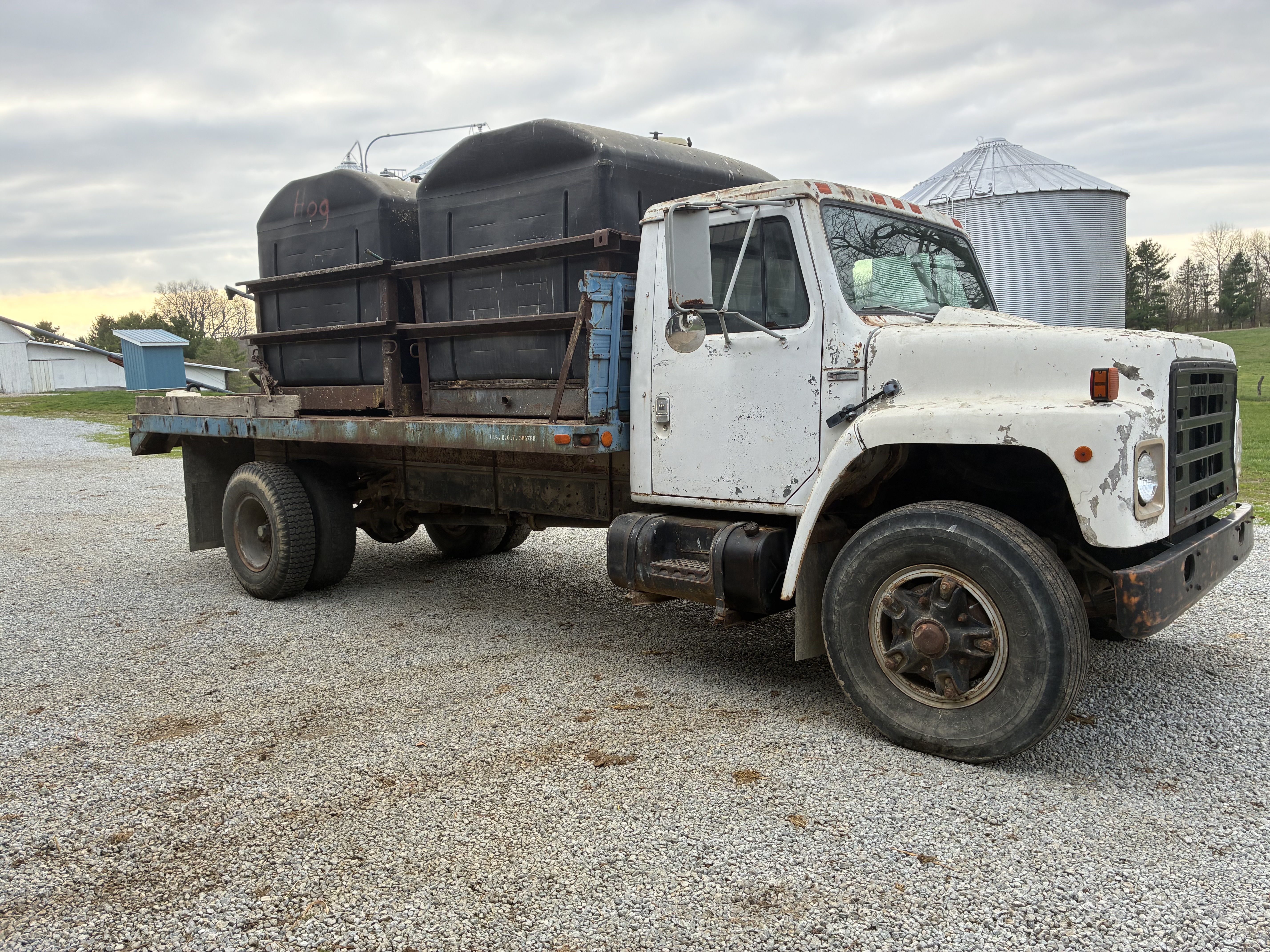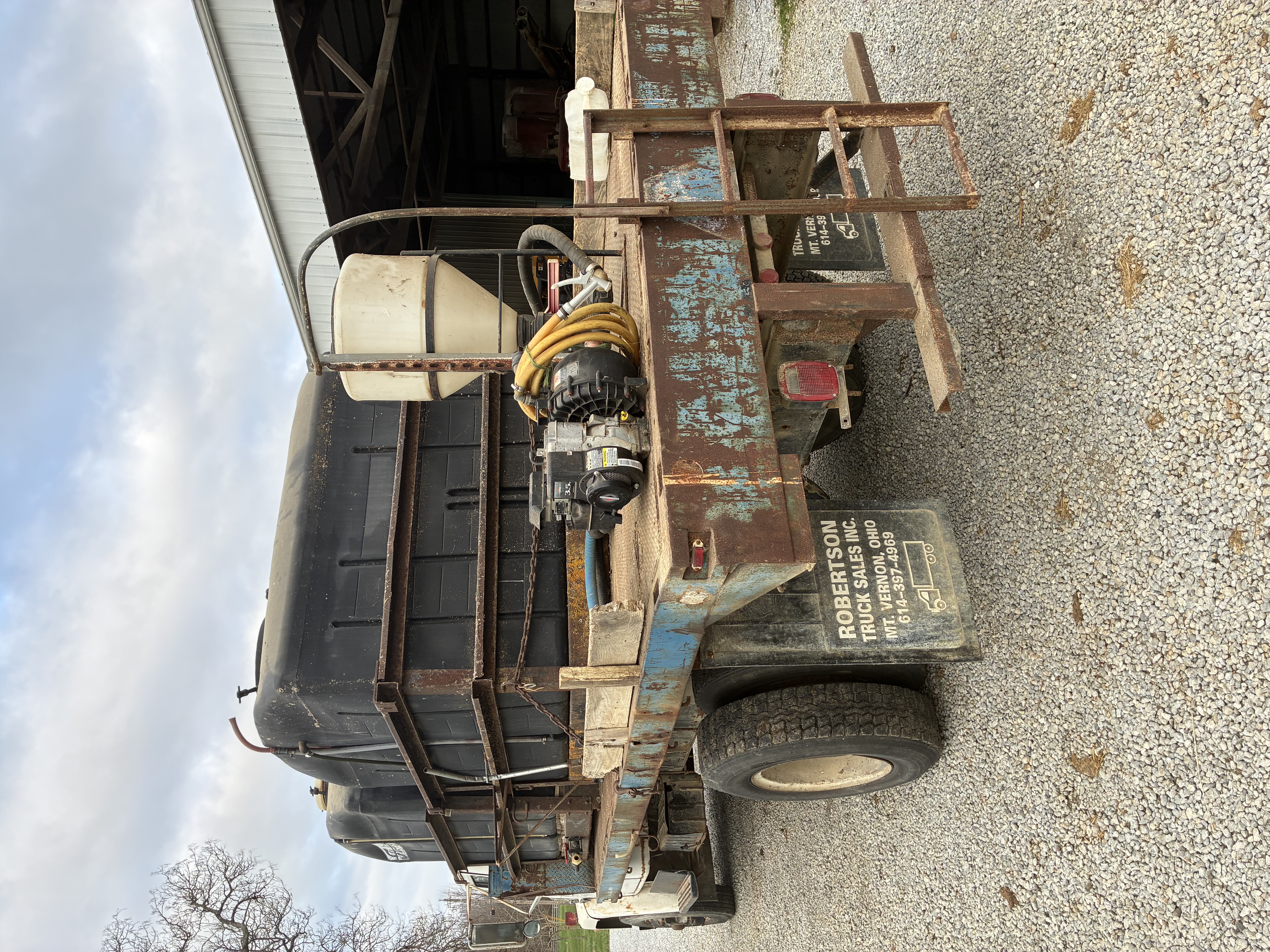 1982 International Straight Truck 3208 Cat 175 HP engine Automatic transmission 18' steel bed 2 Flolizer 100 gallon tanks 3.5 hp Briggs and Stratton pump Educator