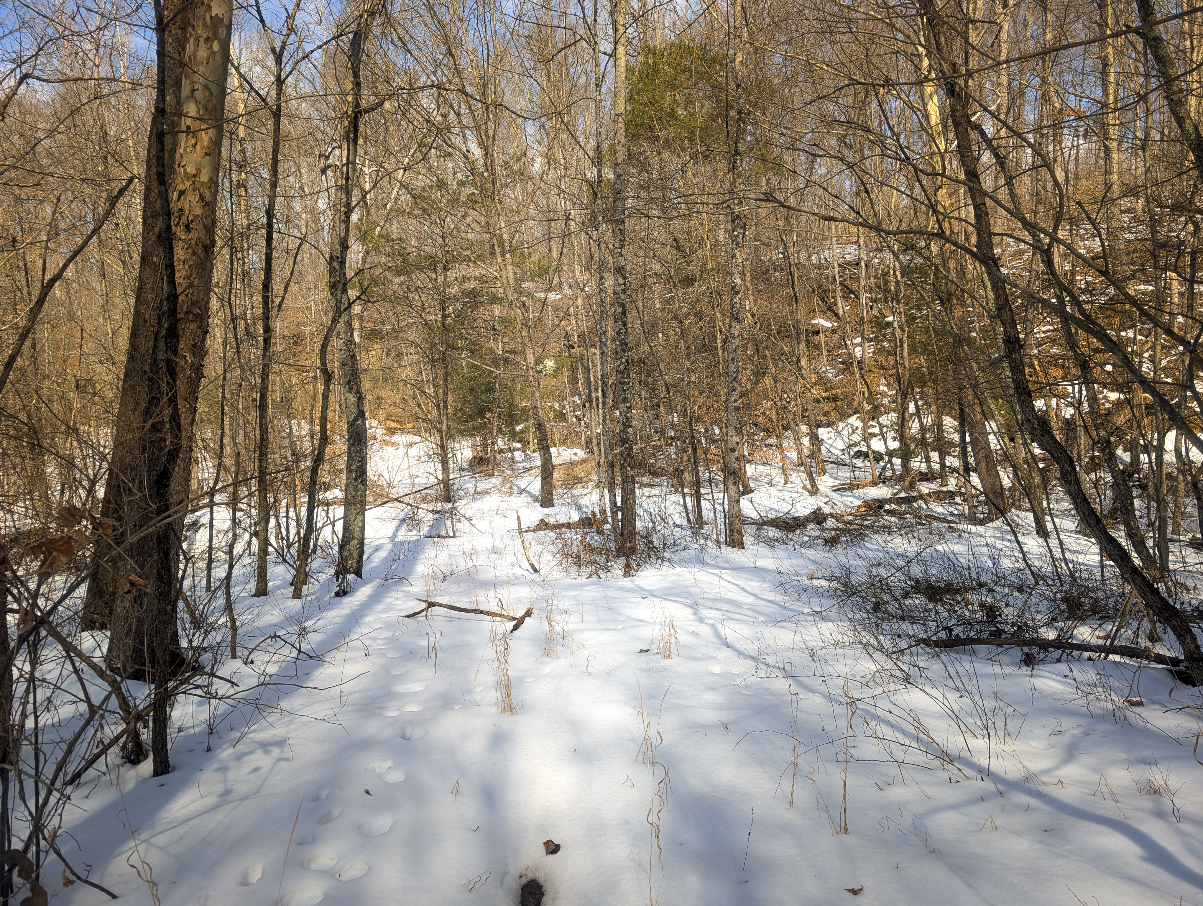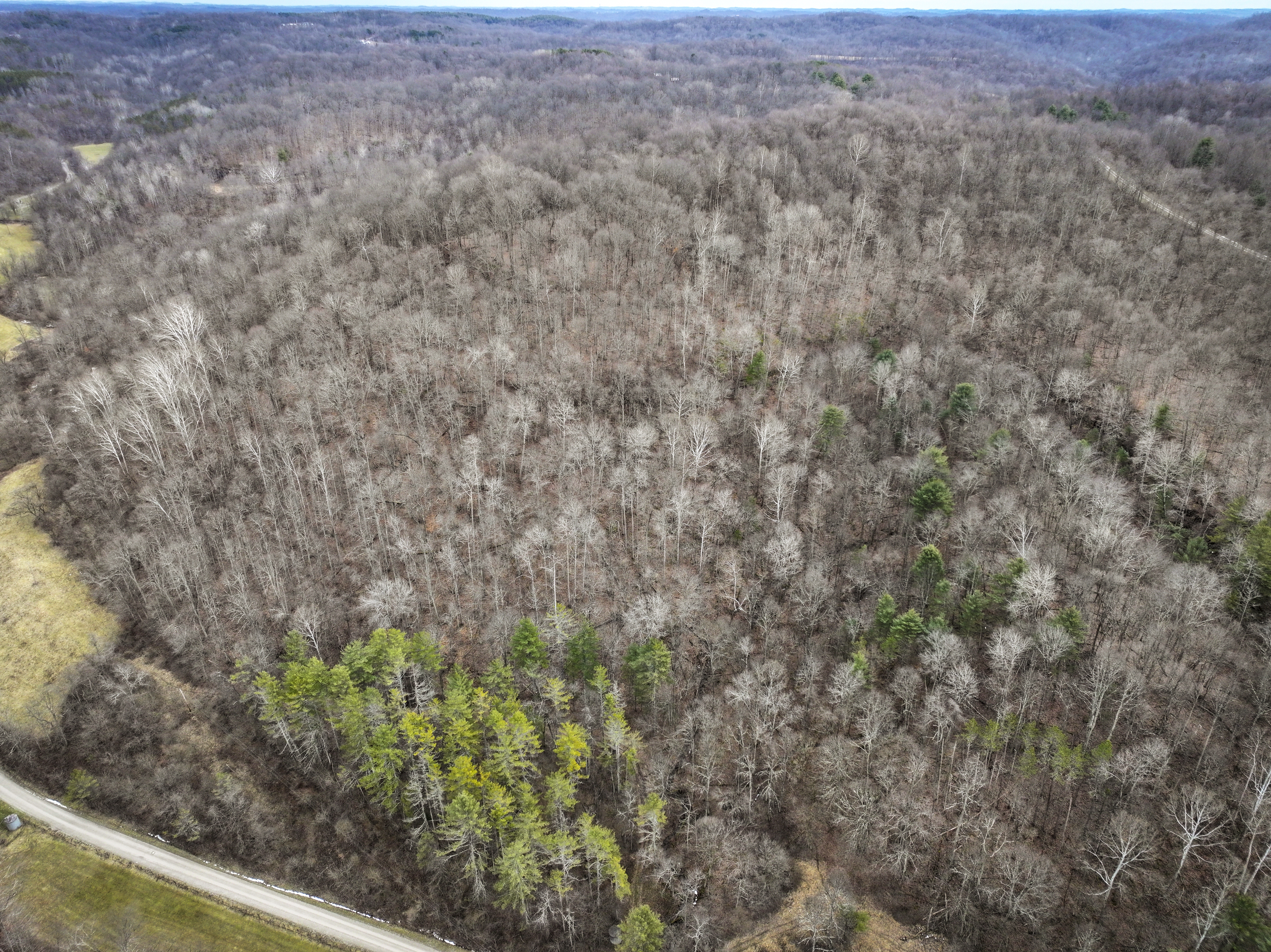135± Acres | This old home site along the road with split potential along both sides of the road offers a heavily wooded property with topography changes with big drainages and valleys. With a creek in the bottom you will find shelves and funnels ideal for the outdoor hunting enthusiast. Some harvestable timber along with rock outcroppings, this property gives raw beauty as you explore. With electric lines crossing the property, this large acreage property could be an ideal build site in the future.